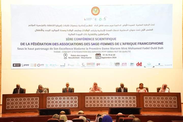 أشرفت السيدة الأولى الدكتورة مريم محمد فاضل الداه على انطلاق أعمال المؤتمر العلمي الأول لاتحاد جمعيات القابلات في إفريقيا الناطقة بالفرنسية، الذي ينظم تحت الرعاية السامية للسيدة الأولى، وذلك تحت شعار إدماج خدمات التنظيم الأسري بعد الولادة – صحة الأمهات وحديثي الولادة والمراهقين – التغذية.