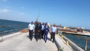 وفى الرصيف التابع لخفر السواحل تفقد معاليه الأشغال الجارية فيه معطبا تعليماته بضرورة انهاء الأشغال وفق الآجال المحددة سلفا وضمن الشروط المتفق عليها.