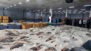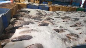 كما تفقد معالي الوزير الكميات الموجودة من سمك الكربيين التى تناهز اربعمئة طن الموجودة فى بعض المصانع تعليماته بتوجيها إلى السوق المحلى وبيعها بأسعار معقولة ،وتوجيه بعضها للشركة الوطنية لتوزبع الأسماك لبيعها فى نقاط التوزيع الخاصة بها