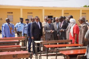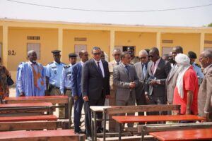 أدي معالي المندوب العام للتضامن الوطني ومكافحة الاقصاء السيد الشيخ ولد بد رفقة معالي وزير التعليم العالي والبحث العلمي السيد يعقوب ولد أمين ؛ وزير التربية وإصلاح النظام التعليمي وكالة اليوم الأربعاء زيارة تفقد واطلاع لعدد من المدارس في نواكشوط بدأها بمدرسة الامتياز على مستوى مقاطعة دار النعيم.