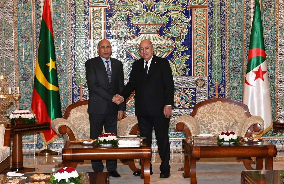 وقد استمع الرئيسان إلى النشيدين الوطنيين الموريتاني والجزائري واستعرضا تشكيلة من القوات المسلحة أدت لهما تحية الشرف.