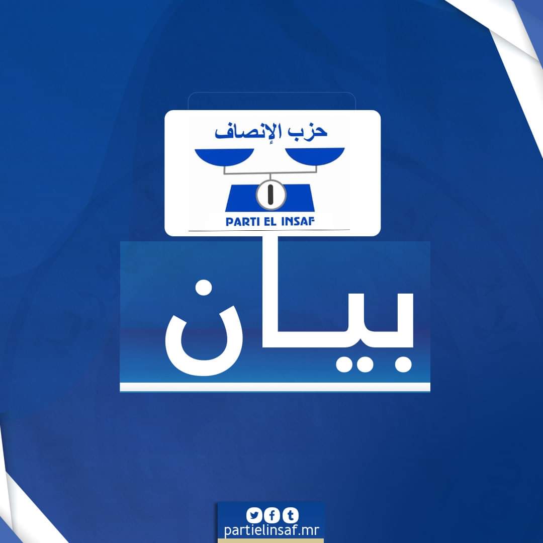 بمناسبة الذكرى الرابعة والستين لعيد الاستقلال الوطني المجيد، يتقدم حزب الإنصاف بأحر التهاني إلى الشعب الموريتاني، مجددا اعتزازه بهذا اليوم العظيم الذي يرمز إلى الحرية والسيادة والكرامة الوطنية.