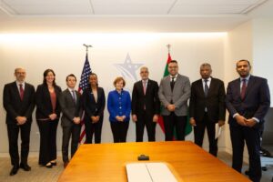 وفي كلمتها الجوابية ثمنت رئيسة مؤسسة تحالف الألفية الجهود الحكومية الموريتانية الرامية إلى إحداث تنمية اقتصادية واجتماعية بالبلد وجددت استعداد الولايات المتحدة الأمريكية و مؤسستها لمواصلة دعم جهود الحكومة ومواكبة الإصلاحات الجوهرية التي يتم تنفيذها ووجهت الشكر للطواقم الفنية من الطرفين على جهودهما التي مكنتنا اليوم من بلوغ هذه اللحظة المهمة من مسار التعاون والشراكة.