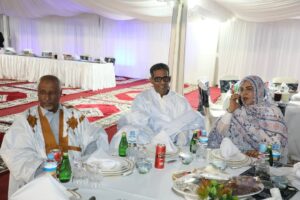 جرى حفل العشاء بحضور الأمين العام المساعد للحكومة والمدير المساعد لديوان الوزير الأول ومكلفين بمهام ومستشارين بالوزارة الأولى ورئيس اتحاد أرباب العمل الموريتانيين وبرلمانيين وشخصيات ثقافية ودينية.