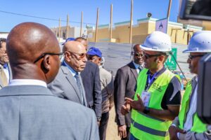 واستقبل صاحب الفخامة رئيس الجمهورية في ورشة الأشغال لإعادة بناء مركز صحي بعين الطلح – مقاطعة تيارت من طرف معالي وزير الإسكان والعمران والاستصلاح الترابي السيد مامودو ممادو انيانك، حيث قدم لفخامته الشروحات حول الخصائص الفنية لهذه المكونة، والإجراءات المتخذة على مستوى القطاع من أجل التزام الآجال التعاقدية واحترام معايير الجودة.