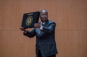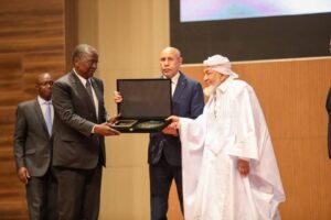 وقد سلّم فخامة رئيس الجمهورية جائزة إفريقيا لتعزيز السلم للعام 2025 للسيد جانو أهوسو كواديو، وزير الدولة، المستشار الخاص لرئيس جمهورية الكوت ديفوار، نيابة عن فخامة الرئيس الحسن واترا، الذي فاز بالجائزة لهذا العام.