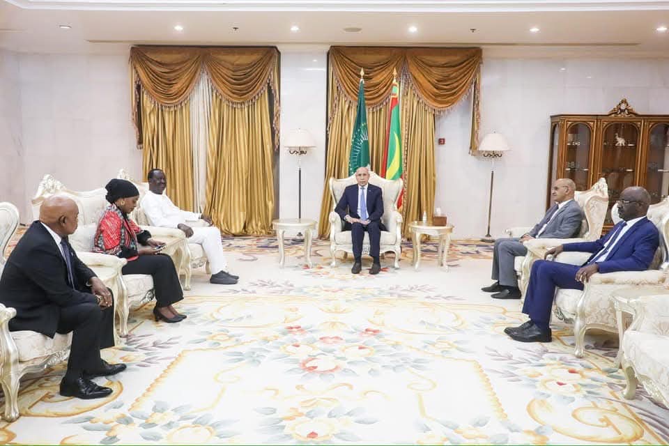 استقبل فخامة رئيس الجمهورية، رئيس الاتحاد الإفريقي السيد محمد ولد الشيخ الغزواني، زوال اليوم الجمعة بالقصر الرئاسي في نواكشوط، وفدا رفيع المستوى من جمهورية كينيا، برئاسة معالي السيد رايلا أدينغا، رئيس وزراء كينيا السابق.