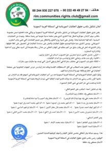 يعرب مكتب الجالية في المدينه المنورة بأغلبيته المريحة عن اعترافه ودعمه ومساندته لإنشاء فرع مكتب ( نادي حقوق الجاليات) للشباب للدفاع عن حقوق الجاليات الموريتانية كما يدعم كل المطالب التي يتبناها وتقدم بها للسلطات المختصة وخاصةً منها مطلب اعطاء الجاليات حق الاختيار والاقتراع المباشر لكل من يمثلها بعيداً عن ان تكون تلك الاختيارات تأتيها معلبة وتفرض عليها فرضاً مما ادى لما هو حاصل من انقسام وتشرذم لا تخطئه العين الآن كما يتمنى مكتب الجالية في المدينة المنورة من القائمين على الشأن العام والمعنيين بهذا الأمر خاصة معالي وزير الداخلية أن يأخذ هذا الأمر بعين الاعتبار بإعتباره مطلب يمس مصالح مئات الالاف من الموريتانيين في الخارج مما يتماشى مع نص الدستور الموريتاني ولاينبغي أن يكون الأمر مجرد بضاعه تباع وتشترى بالمزاد العلني تحت قبة البرلمان لمن يدفع أكثر وهذا منافي للدستور ومخل بالقيم والمبادئ الديمقراطية ولايخدم سوى أصحاب هذه التعيينات والتي لا تصب إلا في مصالحهم الخاصة كما اثبتت التجارب والوقائع على الارض وثبت بما لا يدع مجالٍ للشك أن ضره أكثر من نفعه بالنسبة للجاليات ومن هنا فإننا نطالب بشدة والحاح بإعادة النظر في هذه الامر وأخذه بعين الاعتبار لأهميته الملحة وماله من انعكاسات على الأرض.