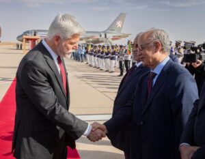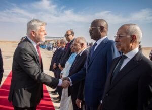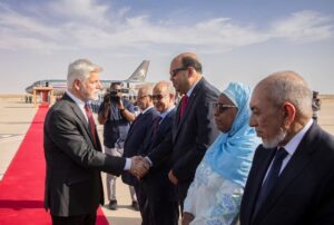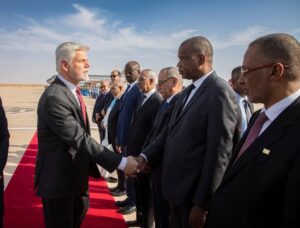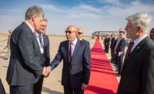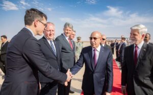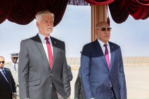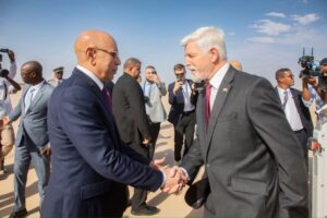 استقبل فخامة رئيس الجمهورية، السيد محمد ولد الشيخ الغزواني، مساء اليوم الأحد عند سلم الطائرة بمطار نواكشوط الدولي”أم التونسي” فخامة رئيس جمهورية التشيك، السيد بيتر بيفل، الذي بدأ زيارة عمل لبلادنا تدوم ثلاثة أيام.