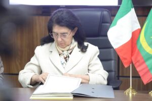 وبدورها أعربت سعادة السفيرة الإيطالية في بلادنا في كلمة لها بذات المناسبة، عن سعادتها بالتوقيع على هذه الاتفاقية، مضيفة أن تزامن رئاسة موريتانيا للاتحاد الإفريقي، مع رئاسة إيطاليا لمجموعة السبع قد عزز العلاقات الثنائية بين البلدين، حيث شارك فخامة الرئيس محمد ولد الشيخ الغزواني في مؤتمر إيطاليا-إفريقيا في روما في يناير 2024، وفي قمة مجموعة السبع، ممثلاً للاتحاد الإفريقي، وهو ما مكن من الدفع بعلاقات التعاون بين البلدين، وبفضل ذلك، تم اعتماد موريتانيا منذ 9 يناير 2025 في خطة ماتي لإفريقيا، وهو مشروع إيطالي استراتيجي على مستوى القارة، بميزانية قدرها 5.5 مليار يورو على مدى 4 سنوات، يتم توزيعها بين 14 دولة مستفيدة.