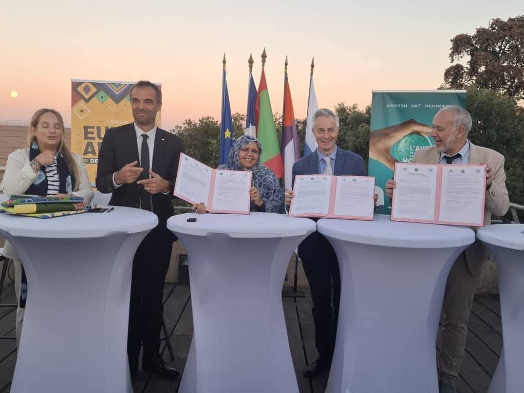وقعت السيدة فاطمة بنت عبد المالك رئيسة جهة نواكشوط مساء اليوم الاثنين 6 أكتوبر 2025 اتفاقية منحة لتمويل مشروع جهة نواكشوط لتحسين الولوج للماء والصرف الصحي وذلك على هامش مشاركتها في النسخة الثانية من ” المنتدى الأوروبي الإفريقي الذي ينعقد كل سنيتين في مونبلييه la Biennale Euro-Africa de Montpellier. ويعتبر هذا المنتدى لقاء هاما لتعزيز التعاون والروابط بين المجموعات المحلية والشبكات في أوروبا وأفريقيا وذلك بحضور أكثر من 900 مشاركا.