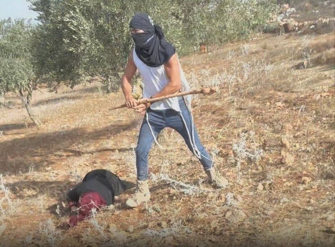 امرأة فلسطينية مسنة، ترتدي ثوبها الريفي المطرز برائحة الزمن الجميل، كانت تجمع الزيتون بيديها المتجعدتين اللتين حملتا الأمل والخبز لأجيال كاملة، فإذا بمستوطن غريب الوجه والهوى يقترب منها بعصاه الغليظة، يهوي بها على رأسها، غير آبه بعمرها، ولا بضعفها، ولا بقداسة الشجرة التي تستظل بها.