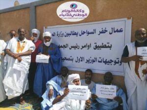 نظمت مجموعة من عمال خفر السواحل في نواذيبو، تم فصلها عن العمل سنة 2016، وقفة احتجاجية أمام وزارة الصيد مطالبين بتطبيق أوامر رئيس الجمهورية بإعادتهم إلى العمل، مطالبين باكتتابهم ودفع مستحقاتهم السابقة.