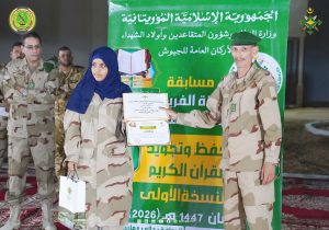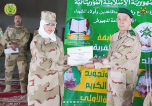 الفائزة الثانية: الجندي ثاني خديجة أحمد صالح سيدي، من مجمع مؤسسة تصنيع الملابس (مستوى ثلث القرآن الكريم).