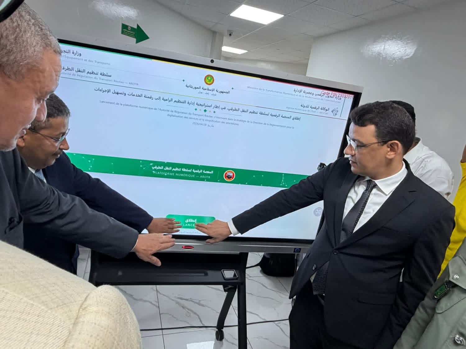 أشرف معالي وزير التجهيز والنقل، السيد أعل ولد الفيرك، رفقة معالي وزير التحول الرقمي وعصرنة الإدارة، السيد أحمد سالم ابده اشفغ، اليوم الثلاثاء بمقر سلطة تنظيم النقل الطرقي في نواكشوط على إطلاق نظام رقمي متكامل لتحصيل الإتاوات المرتبطة بقطاع النقل الطرقي في إطار تنفيذ التوجهات الحكومية الرامية إلى تحديث الإدارة العمومية وتسريع التحول الرقمي للخدمات.