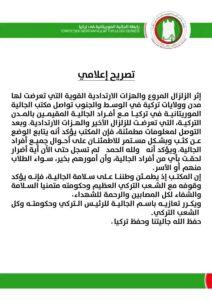 الجالية الموريتانية في تركيا تعلق على الزلزال وتؤكد سلامة أفرادها (بيان)