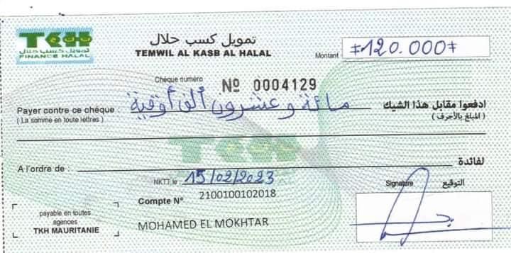 رجل الأعمال محمد ولد محمد سالم يرصد 21.6 مليون أوقية لأبناء الصوفي ولد الشين(صورة+وثائق)