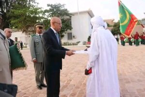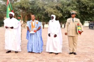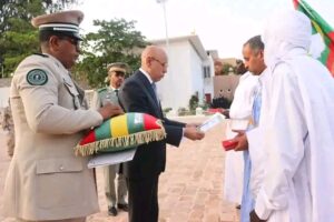 قام رئيس الجمهورية محمد ولد الشيخ الغزواني بالقصر الرئاسي بالعاصمة نواكشوط مساء اليوم الإثنين بتكريم شهداء الوطن الثلاثة وتوشيحهم بوسام الاستحقاق الوطني مع ترقيتهم في الرتب العسكرية، تقديرا لتضحيتهم من أجل البلاد وعرفانا لشجاعتهم في الميدان.